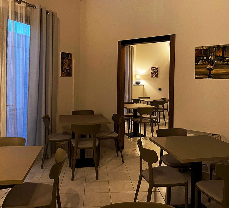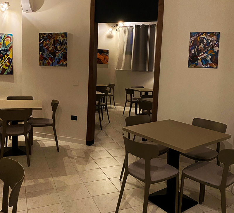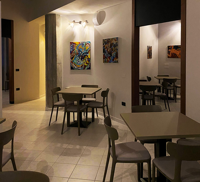 Il locale ha un arredamento che gioca su un contrasto moderno-vintage, con un’atmosfera intima dove vivrete serate memorabili.
